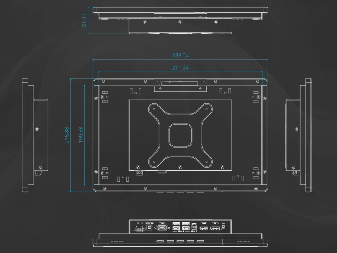 | DM2-W133K-R10 | 13.3″ 350 cd/m² 1920 x 1080 monitor, VGA, HDMI, DisplayPort, with USB 3.0 HUB, USB PC touch screen, 9 ~36V DC input, Speaker, Camera, R10 |