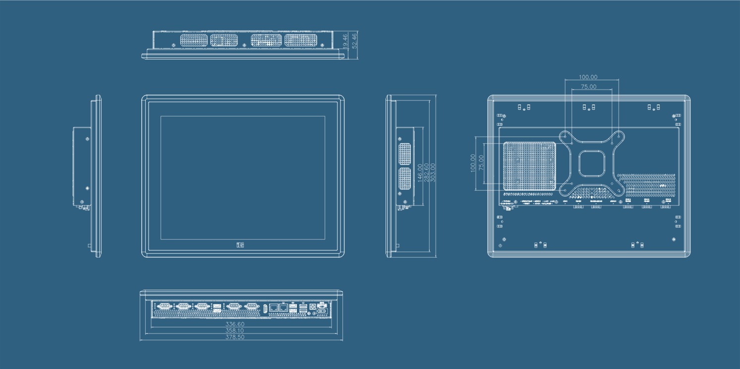 The PPC2-C15 features a 75×75 / 100×100 VESA-mountable design that allows you to mount the display on a monitor stand or on a wall, depending on your specific needs. In addition, IEI developed a brand-new way for panel mounting. It requires fewer clamps and can be easily fastened by hand.