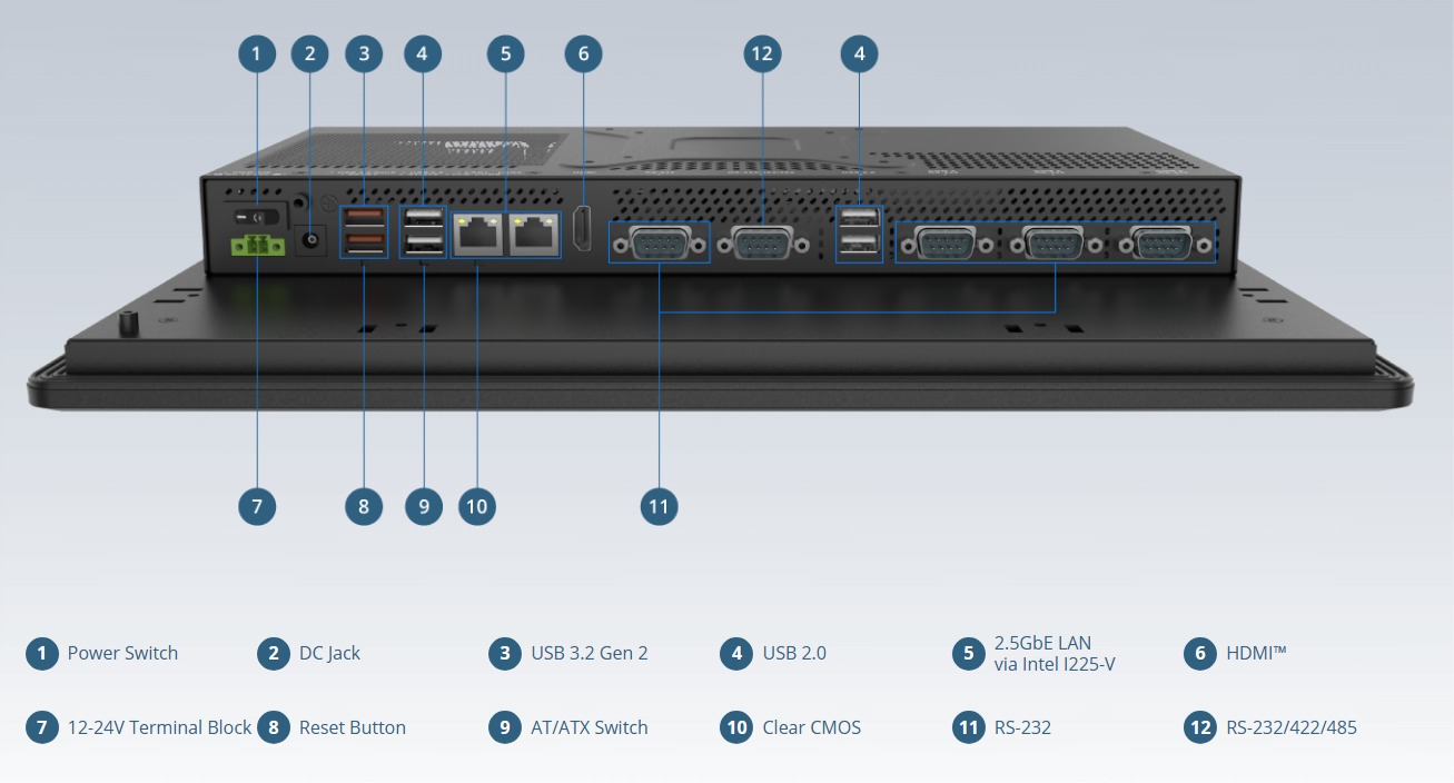 Featuring the latest Intel® UHD Graphics with 16 EUs, the panel PC can connect with a second display via the HDMI™ port to deliver powerful hard decoding capability and pixel-accurate 4K resolution.