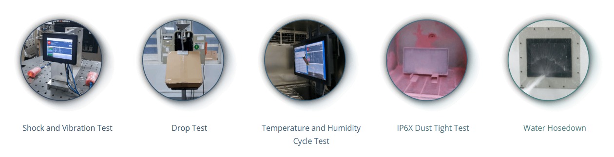 To verify the rugged design, experienced IEI team will conduct the MIL-STD test with our own qualified laboratory. Ruggedness and durability testing items as following are subject the industrial panel PC to harsh environment.