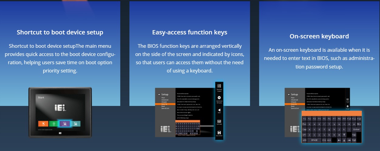 tBIOS allows users to navigate with finger on a touch-enabled monitor to make BIOS configuration easily. It helps eliminate excessive steps and unnecessary keyboard connection.
